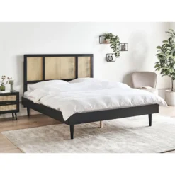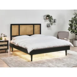 AURAY – Tweepersoonsbed LED – Zwart – 160 X 200 Cm – Rubberhout