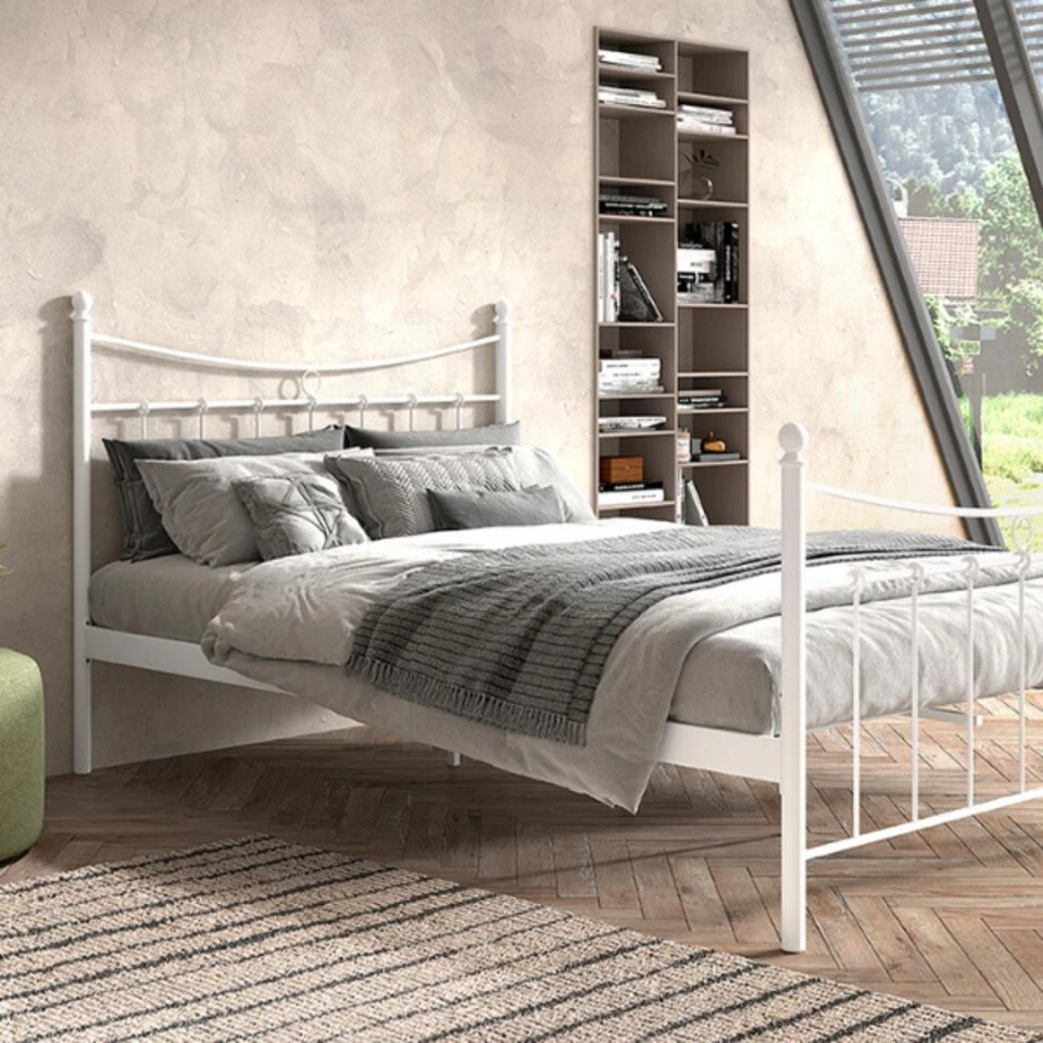 Liza heeft een dromerig design dat elke kamer een romantische sfeer geeft. Het is een tweepersoonsbed van 140 x 200 cm groot en werd gemaakt uit wit metaal. Het bed heeft een hoog hoofd- en uiteinde van 111 en 86 cm.