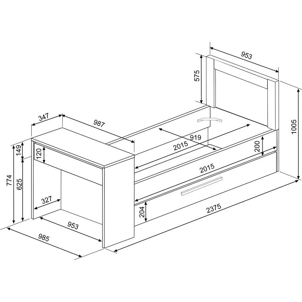 Het bed Shipley is ideaal voor mensen met weinig ruimte of voor in studentenkamers. Dankzij de bedlade is er ruimte voor twee matrassen van 90×200 cm. Deze matrassen zijn niet inbegrepen en kunnen aangekocht worden op onze website. Door de wieltjes kan de bedlade makkelijk tevoorschijn getoverd worden, maar net zo makkelijk kan je deze ook weer laten verdwijnen. Bij dit bed wordt een bureau (98,7×34,7x73cm) geleverd dat beschikt over een lade. Bed Shipley is gemaakt van spaanplaat en werd afgewerkt met hoogwaardig melamine.