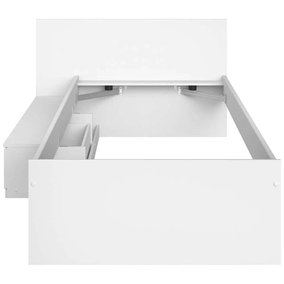 Bed Timo is een fijn wit bed. Het bed is gemaakt van spaanplaat, wat het erg stevig en onderhoudsvriendelijk maakt. Door het handige opbergvak met lade, welke zowel links als rechts gemonteerd kan worden, biedt het voldoende ruimte voor diverse spullen. Handig wanneer je in ruimte wil besparen, bijvoorbeeld op de tienerkamer! Kleed het bed aan met een leuk dekbedovertrek en diverse knusse kussentjes en de slaapkamer ziet er gegarandeerd prachtig uit!