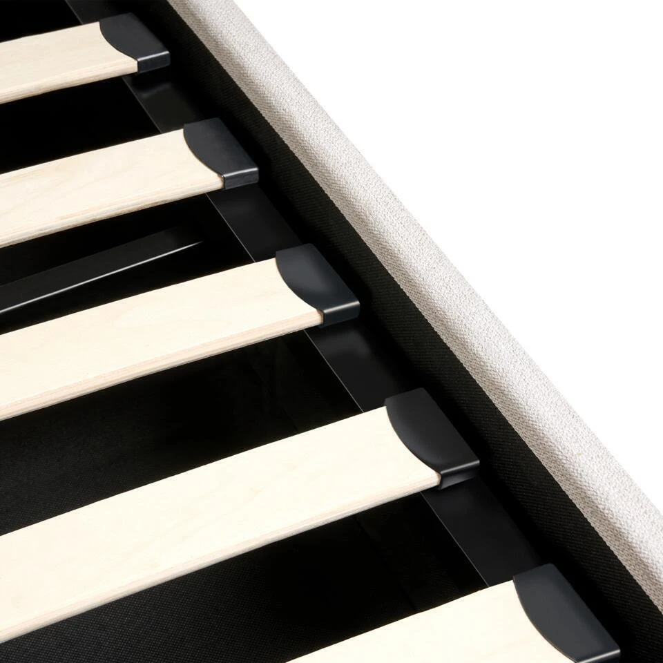 Aanbod omvat: 1 x Bedframe met opbergruimte, 1 x Lattenbodem (30 gebogen latten), Niet inbegrepen: Matras, beddengoed en kussens