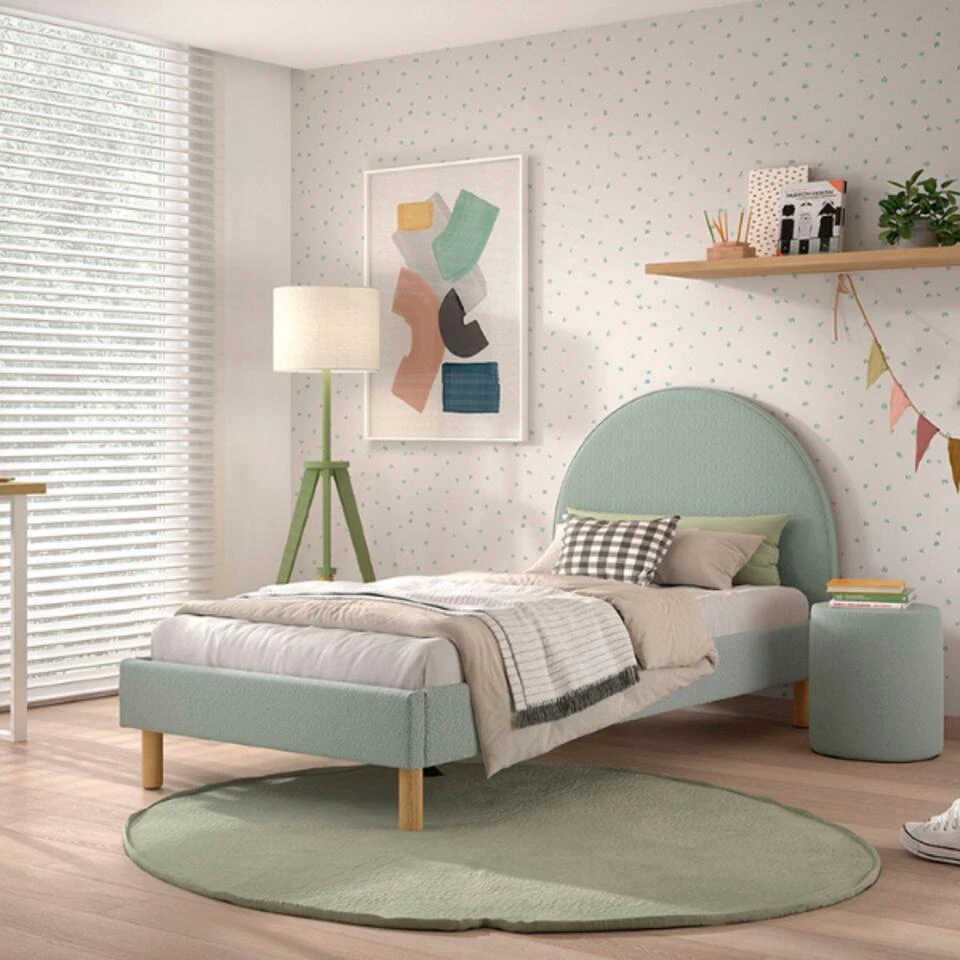 Op zoek naar een bed dat niet alleen lekker slaapt, maar er ook leuk uitziet? Dit Vipack bed is bekleed met een zachte mintkleurige bouclé stof en heeft een opvallend maanvormig hoofdbord. Dat maakt het bed extra vrolijk en zorgt meteen voor een speelse sfeer in de slaapkamer.