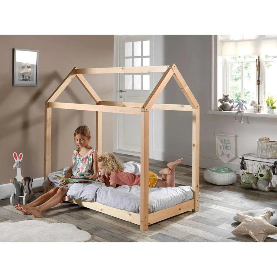 Vipack bed Cabane is een bijzonder kinderbedje in de vorm van een huis. Dat staat knus en gezellig in de kinderkamer! Het bed is naturel van kleur en gemaakt van grenenhout. Hierdoor oogt het natuurlijk en voelt het heerlijk stevig aan. Bed Cabane is geschikt voor een matrasmaat van 70×140 cm en het heeft een maximaal belastbaar gewicht van 40 kg. De totale afmeting van het bed is 146x78x142 cm. Maak de kinderkamer helemaal af!