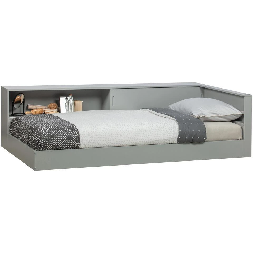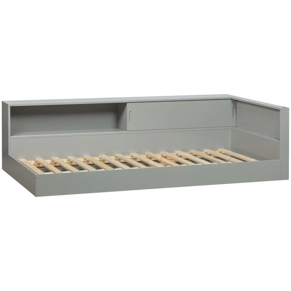 Het Connect hoekbed grenen betongrijs is een eigen ontwerp uit de collectie van het Nederlandse merk WOOOD. Het bed is geschikt voor 1-persoon en heeft de matrasmaat 90×200 cm. De vorm van het bed loopt in een hoek. Het bed heeft wel een hoofdbord en een kast langs de hele breedte van het bed, inclusief schuifdeur en geen voetbord. Het bed heeft als het ware een ingebouwd nachtkastje.
